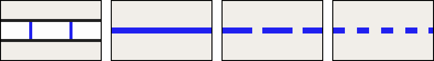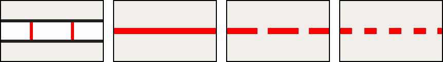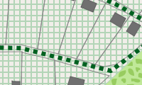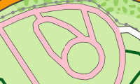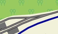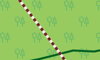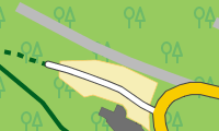 - (Gitter-) Schraffuren werden für Bereiche mit Zugangseinschränkungen (mil. Bereich, Baugebiete, Kraftwerk, Schrebergarten, Privatparkplatz, ...) verwendet.