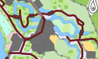 Um Verwirrung zu vermeiden, sollte immer nur ein Routentyp aktiviert werden. Wenn vorhanden wird die Route mit Name und Nummer angezeigt. Die Route wird jeweils in der Farbe des höchstwertigen Netzwerks angezeigt. Der Name wird ebenfalls aus dem höchstwertigen Netzwerk entnommen. Es kann nur ein Name angezeigt werden. Es werden jedoch alle vorhandenen Nummern angezeigt.