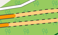 5 = Unbefestigter Weg, Oberfläche besteht aus Sand, Erde etc., oft nur Abdruck im Gras, teilweise schwer von umgebendem Gelände unterscheidbar.